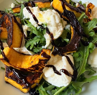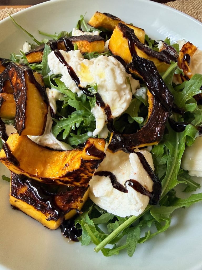 Delicata squash supports gut health with gentle fiber, while burrata delivers high-quality protein and calcium. Pairing it with bitter greens like arugula helps balance blood sugar and aids digestion — ideal for those on a semaglutide or GLP-1-based regimen.