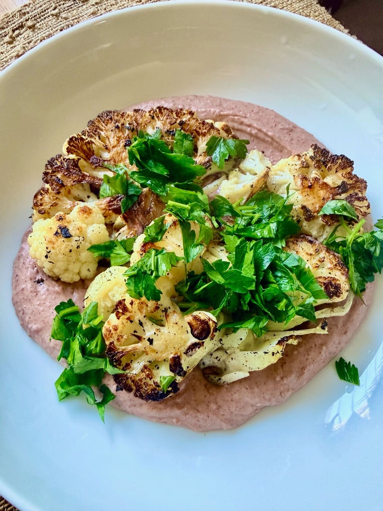 Grilled Cauliflower Steak with Anchovy–Bean Purée